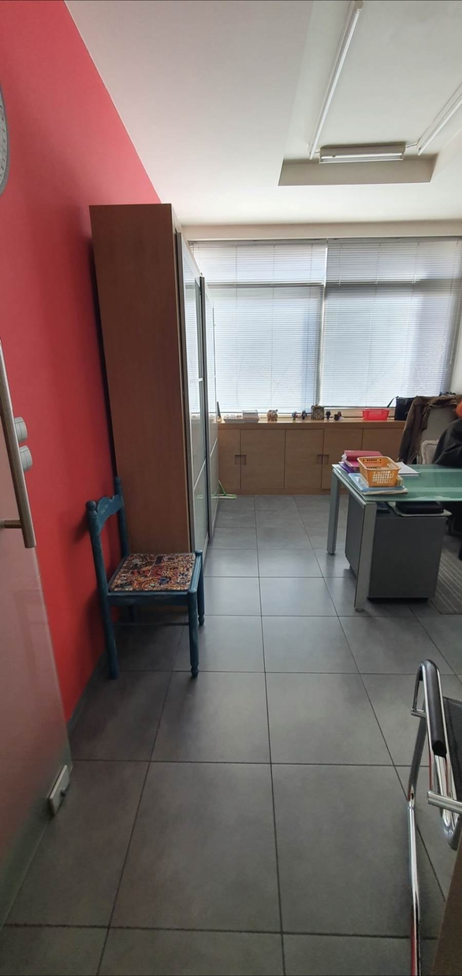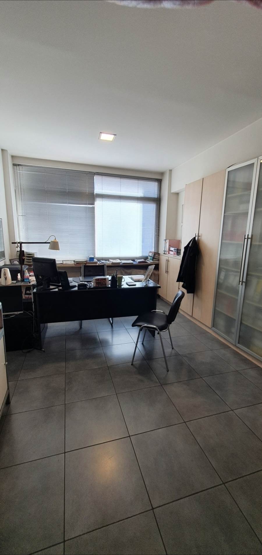 - Στην τρέχουσα διαμόρφωσή του περιλαμβάνει 3 γραφεία (1 με ενσωματωμένο χώρο συσκέψεων), εκθεσιακό χώρο, χώρο πωλήσεων, 2 αποθήκες (65+10τ.μ.), 2WC (1 με ντουζιέρα), κουζίνα