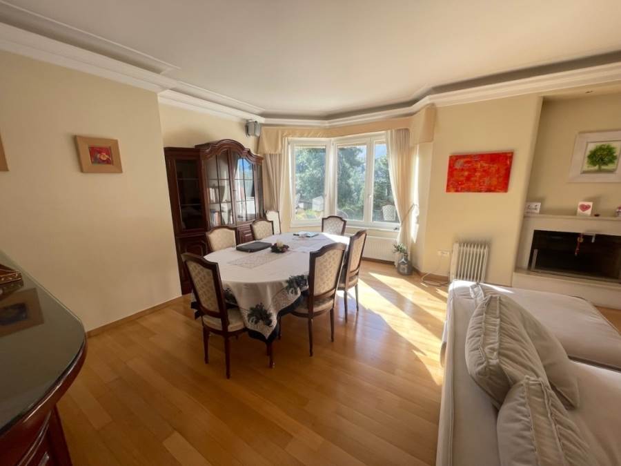 Ένα πανέμορφο οροφοδιαμέρισμα 156τμ σε εξαιρετικό σημείο του Διονύσου δίπλα στην Καϊρη και κοντά σε πάρκα και συγκοινωνίες. Το διαμέρισμα είναι 1ου ορόφου από τη μια πλευρά και σαν δευτερος όροφος από την άλλη με πρόσβαση σε μεγάλη βεράντα με απεριόριστη θέα στο βουνό.Η κατοικία είναι περιμετρικά ελεύθερη με εξαιρετικό προσανατολισμό που την καθιστά πολύ φωτεινή και ηλιόλουστη όλη μέρα. Μπαίνοντας συναντάμε ένα πολύ μεγάλο σαλόνι με τζάκι, το χώρο της τραπεζαρίας και μια open plan κουζίνα. ΄Στο ίδιο επίπεδο υπάρχει και ένα Wc επισκεπτών. Ανεβαίνοντας 5-6 σκαλοπάτια περνάμε στο χώρο των υπνοδωματίων που διαχωρίζει με πόρτα από την υπόλοιπη κατοικία, όπου συναντάμε τρία μεγάλα υπνοδωμάτια , εκ των οποίων το ένα είναι master με δικό του μπάνιο. Υπάρχει ένα δεύτερο μπάνιο που εξυπηρετεί τα άλλα δύο υπνοδωμάτια. Η κατοικία διαθέτεi κουφώματα αλουμινίου με διπλά τζάμια, θέση στάθμευσης εξωτερική και αυτονομία πετρελαίου ανεξάρτητη στους δύο χώρους. Το διαμέρισμα είναι ημιτελές και χρήζει αποπεράτωσης Οι φωτογραφίες είναι ενδεικτικές, από το διαμέρισμα που βρίσκεται στο ισόγειο. Η τιμή είναι στις 350000€.