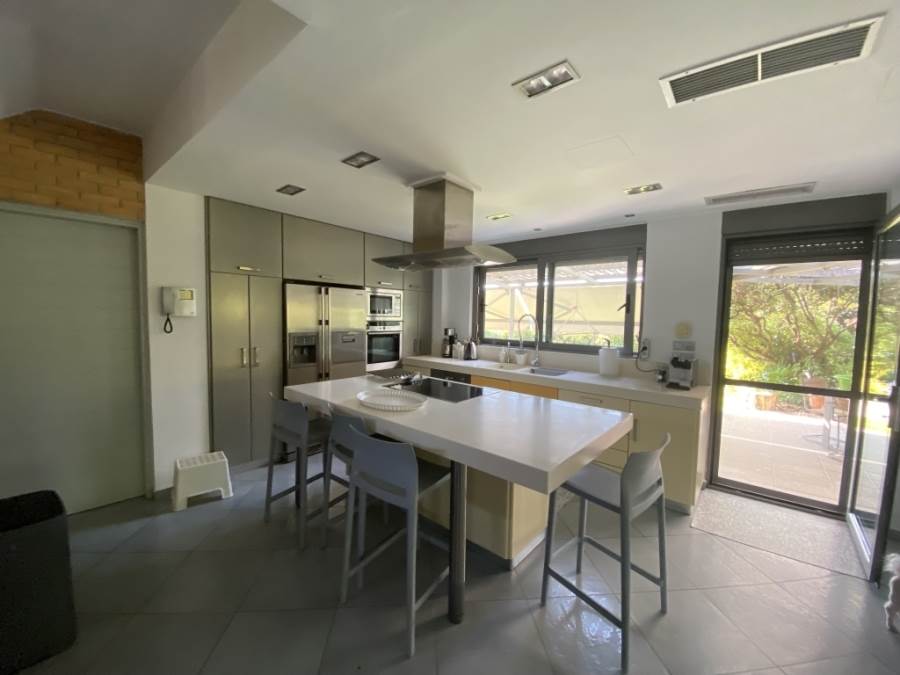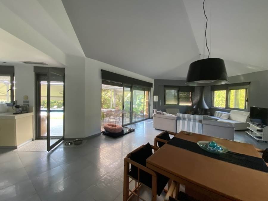 1ο Επίπεδο: Ημιυπόγειο 120τ.μ. με ανεξάρτητη είσοδο εξωτερικά: ηλιόλουστο με μεγάλες μπαλκονόπορτες επάλληλες αλουμινίου και στεγασμένη βεράντα - πλάτωμα που οδηγεί στον κήπο και την πισίνα, το οποίο περιλαμβάνει άνετο σαλόνι με ενιαία κουζίνα, ενεργειακό τζάκι, 2Υ/Δ με ανοιγόμενες μπαλκονόπορτες αλουμινίου, 1 μπάνιο, αποθήκη, λεβητοστάσιο.